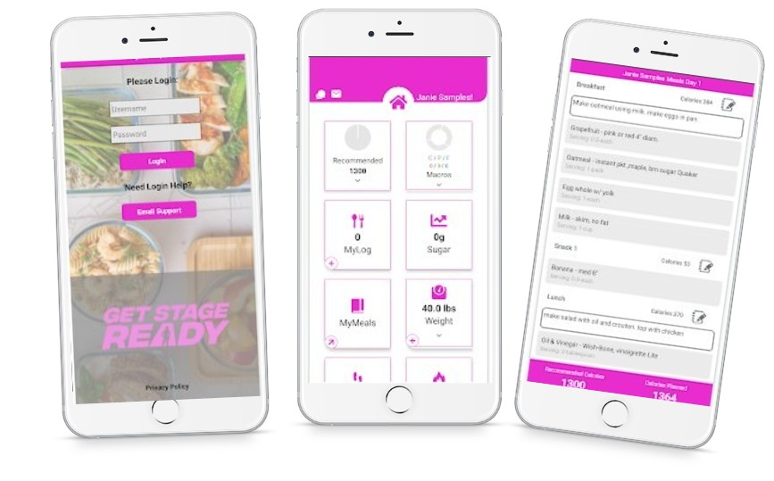 Access to the Get Stage Ready™ Meal Plan App with preloaded plans, macro tracking, and exercise device syncing